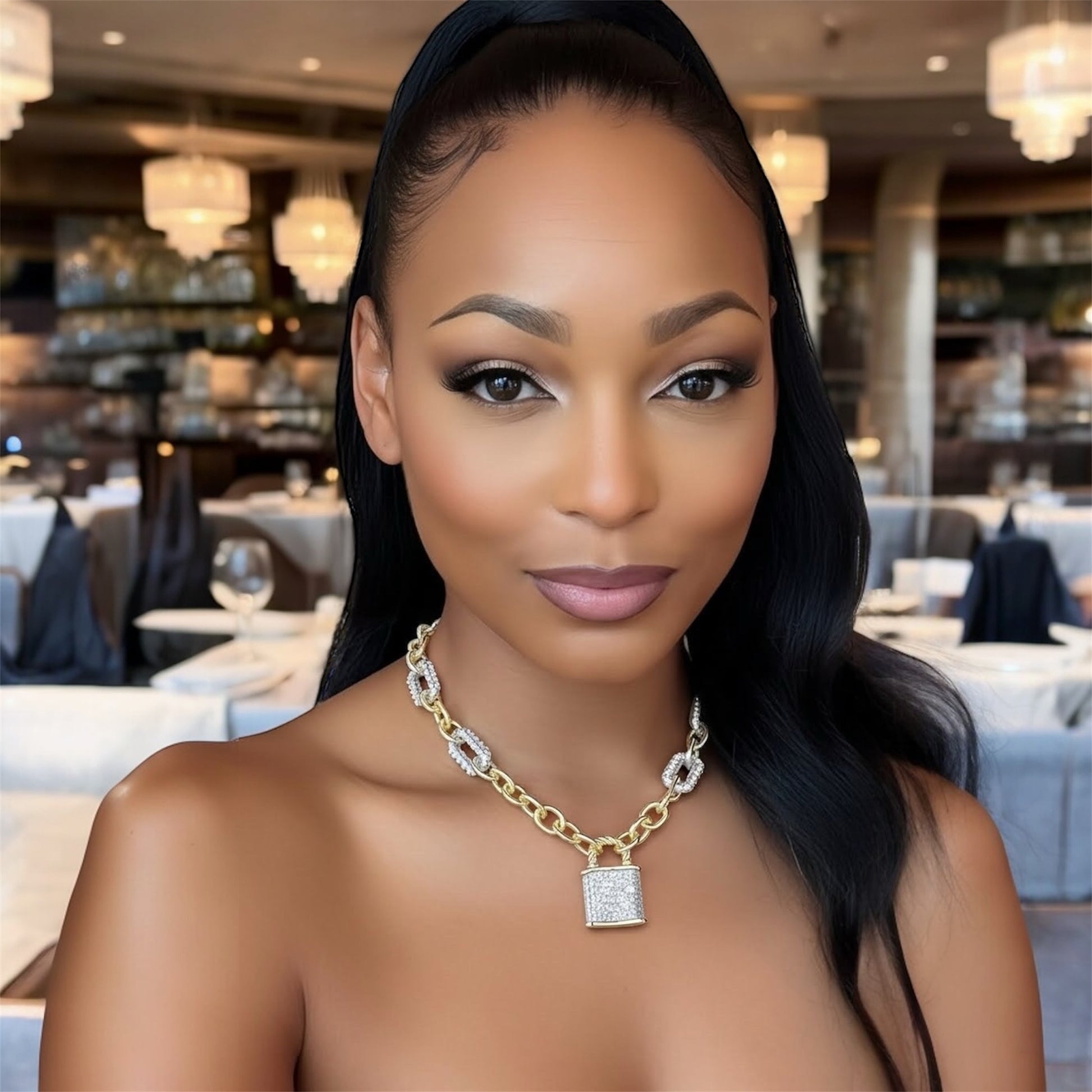 Unlock your inner magic with The Enchanted Lock Necklace, a stunning blend of elegance and edge. Featuring a shimmering pavé-encrusted lock pendant suspended from mixed metal links, this piece adds instant sparkle and mystique to any look. Wear it solo for a bold statement or layer it with your favorite chains for a chic, fashion-forward finish. A must-have accessory for women who love style with a touch of enchantment.